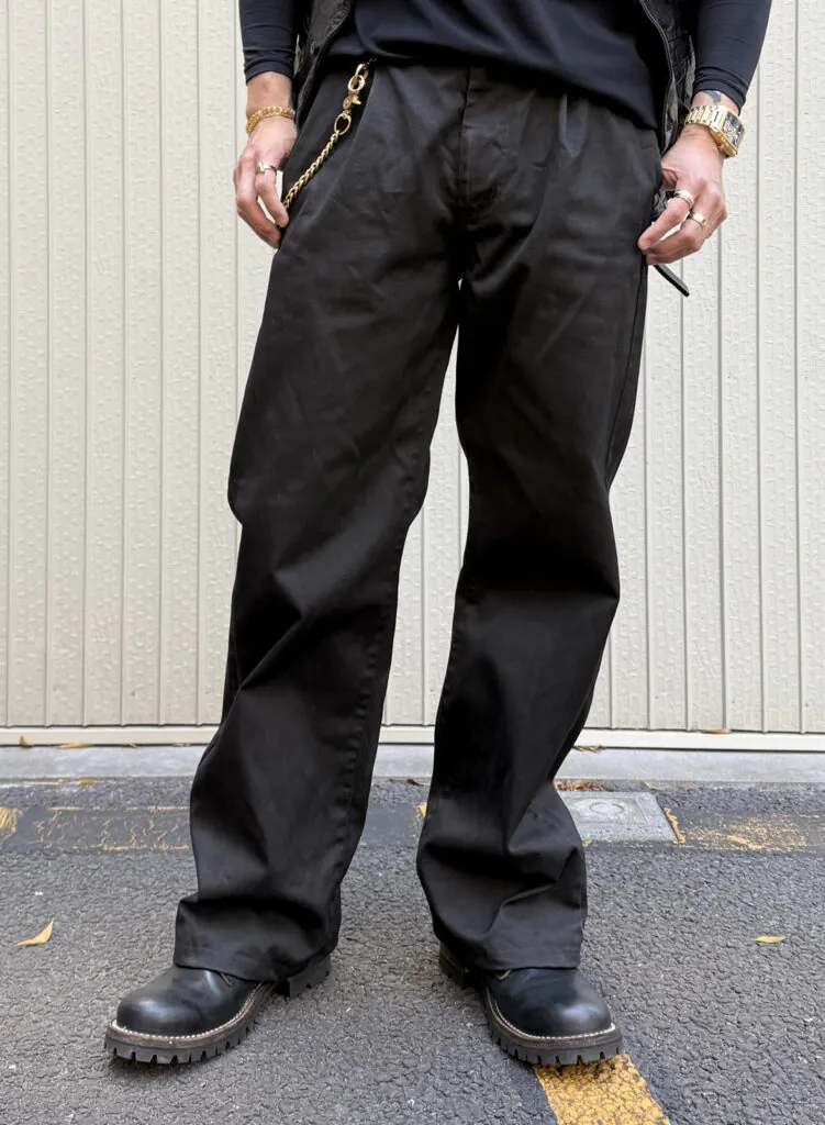 - ボトムスは、ISAMU KATAYAMA BACKLASH PIGMENT-DYED WEST POINT GARMENT-WASH WIDE STRAIGHT PANTS[BLACK]:53,900円