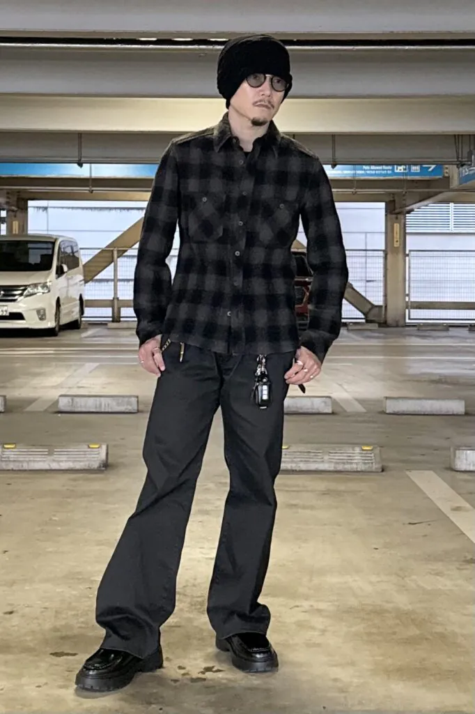 - トップスは、ISAMU KATAYAMA BACKLASH SALT-SHRUNK WOOL CHECK SHIRT[GLAY]:41,800円